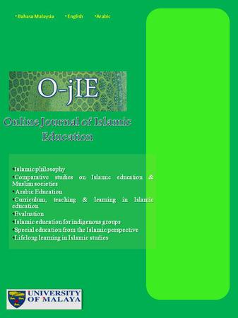 Online journal of Islamic Education (O-jIE) is an international, professional refereed journal in the interdisciplinary fields that relevant to Islamic studies. O-jIE serves as a platform for presenting and discussing the emerging issues on Islamic Studies. The journal is published twice a year (April and July) and committed in publishing high quality articles in Bahasa Melayu, English and Arabic, ranging from original research papers in the area of Islamic studies. This journal welcomes original and qualified researches on all aspects of Islamic studies. The topics may include, but are not limited to: Islamic philosophy, comparative studies on Islamic education and Muslim societies, Arabic Education, curriculum, teaching and learning in Islamic education, evaluation, Islamic education for indigenous groups, special education from the Islamic perspective and lifelong learning in Islamic studies.